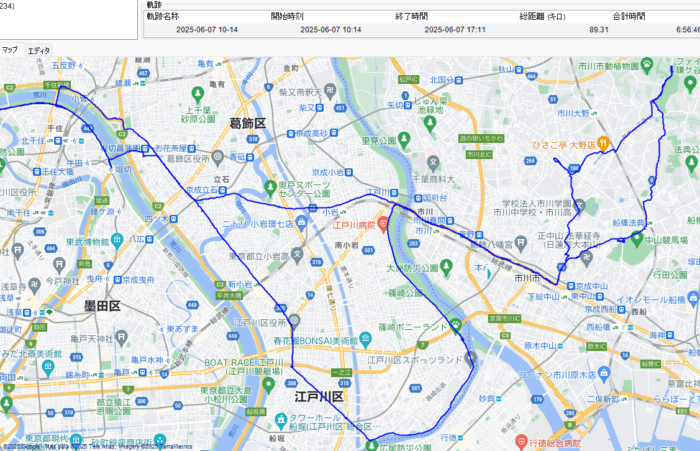 確か5kmと出たはずだが、なかなか着かないし、船橋市でなく、市川市の北の方にいる。