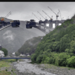 半円の迂回路上から撮影。  右奥に橋、 旧売店から100mぐらい先に新売店の建物。