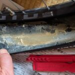 バッグ底のエッジ部保護の縁取り布がタイヤに擦れたようで、