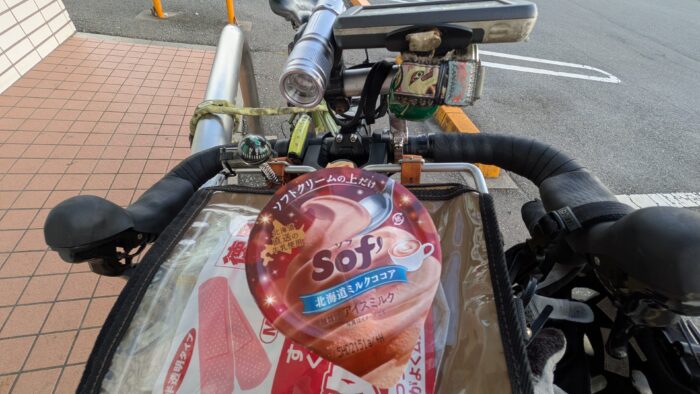 寄居町のコンビニでAKAGIのアイス食べて、麦茶をボトルに