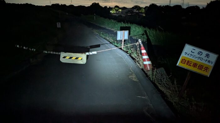 サイクリングロードに下りる坂にチェーンで封鎖されていた。
