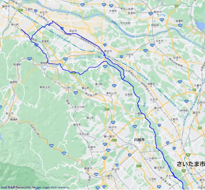 R17号で深谷市へ入り、小山川を渡って、本庄市に入る。