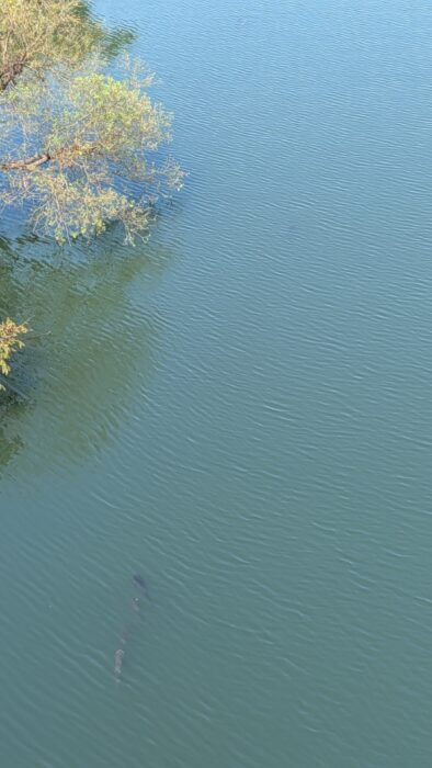 ハクレンやソウギョなどの外来種の可能性もあるが、橋の上から分からない。