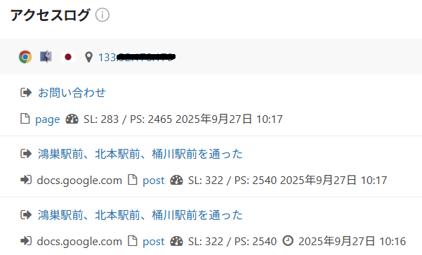 10:17美味散歩のお問い合わせの入力元端末がログに出ていた。
