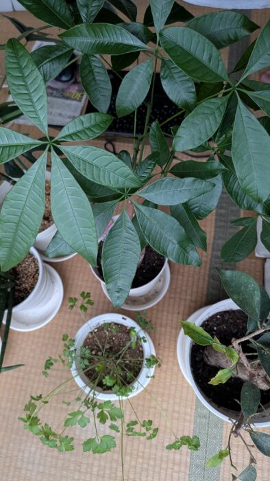 部屋の枯らしてしまって2鉢目のイタリアンパセリは買ったときに、1度摘みとって食べたが、