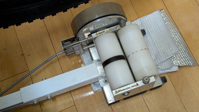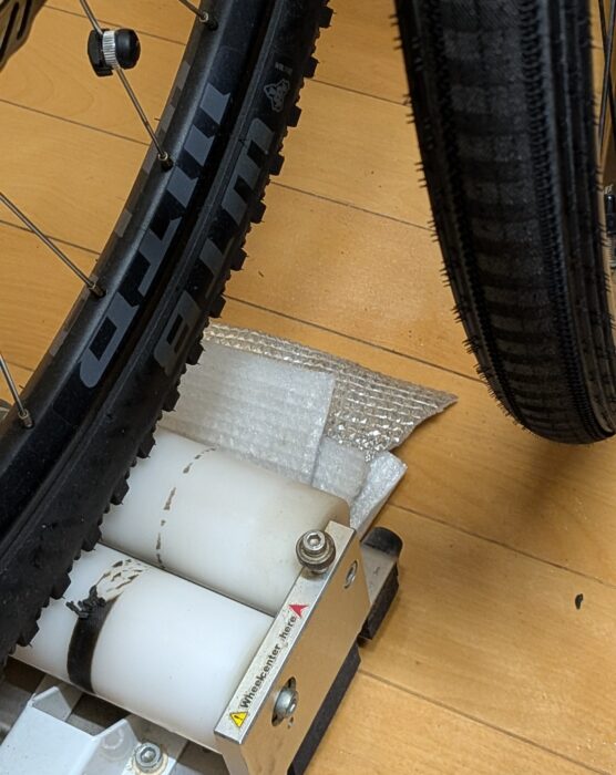 ローラー台を下りてから、 上に掲載済みの650Bx47の音を録音するために、車輪を交換しようとして、ローラー台の後輪が載る部分をみたら、