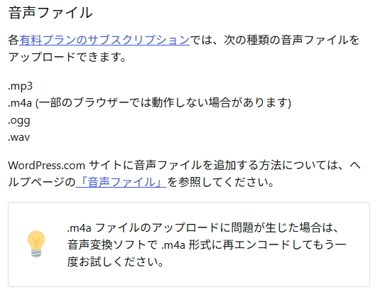 m4aに戻したのをダウンロードして、それをwordpressにアップロードした。