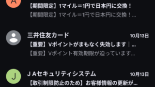 日記・つぶやき 2025年10月のフィッシングメール 2025年10月末 今月も、フィッシングメールが多かった。 スマホでスワイプしてゴミ箱に入れてしまうが、 スマホで先にゴミ箱にいれてしまうためか PCのメールソフトやWEBメールを見てもゴミ箱に入ってない。 スマホでゴミ箱の他のメールをゴ... 2025.10.31 日記・つぶやき