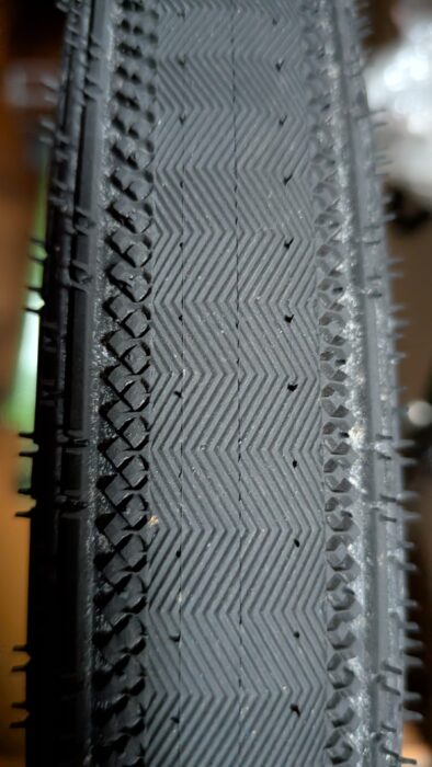 帰宅後、タイヤを見てみると、溝の白っぽいWAXは無くなっていた。