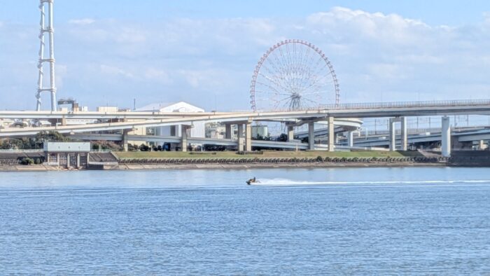 この時期なのに、水上オートバイが2台 荒川を遡って行った。