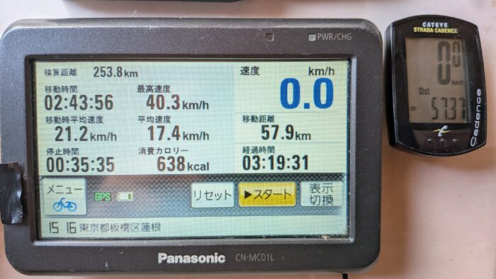 とりあえず、 NAVIのサイクルコンピュータを信じて、