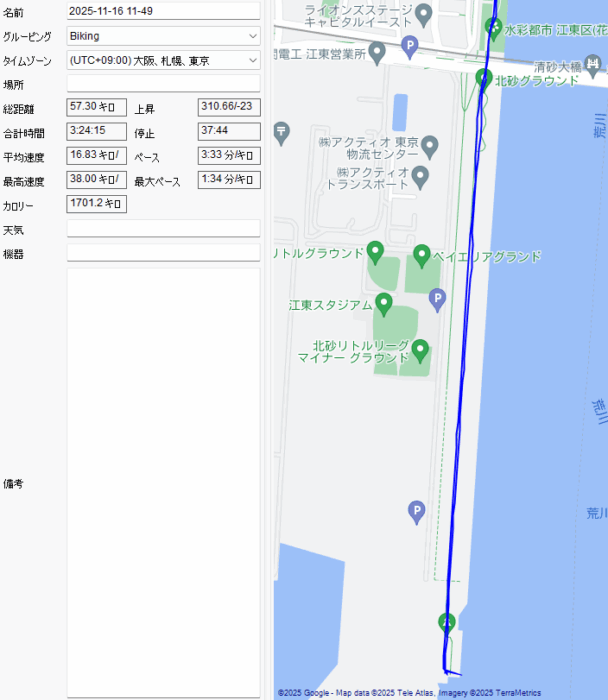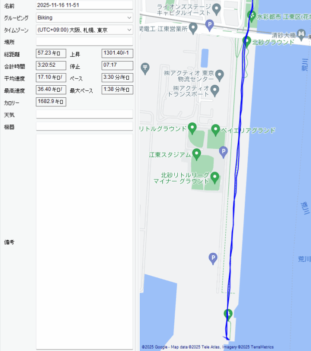 GPSログの距離の方がサイコン表示よりも走行距離が短い。