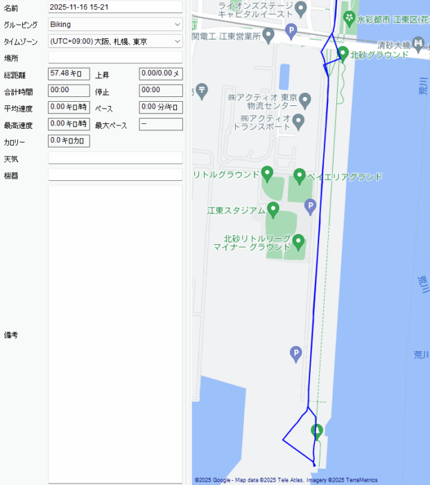 今日はNAVIでもGPSログを取得できた 57.48km。