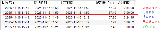 犬猫用GPSロガーはログ周期が他より長いので、走行距離が短く出る。