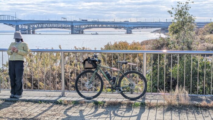 今日の作戦は、河口からの距離標識が1km毎に立っているので、それと比較して