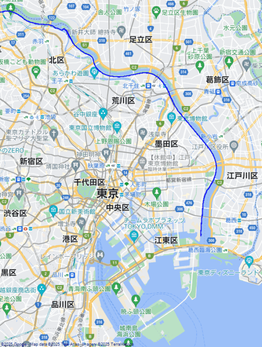 今更ながら、AIチャットに管理用道路に河口からの距離標識があるが、道なりの距離か?