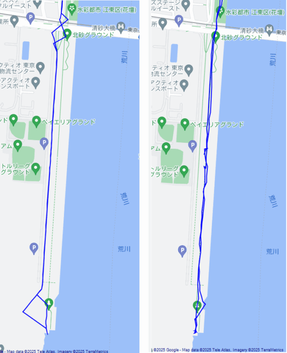 NAVIのGPSログの経路と犬猫用GPSロガーの経路をまた比較したら、
