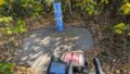 正しかったか調べようかと車止めゲートの前で止まった後、ゲートを抜けていると