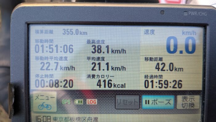 タイヤ周長2110mmに変更していたサイコンの走行距離は42.71kmと