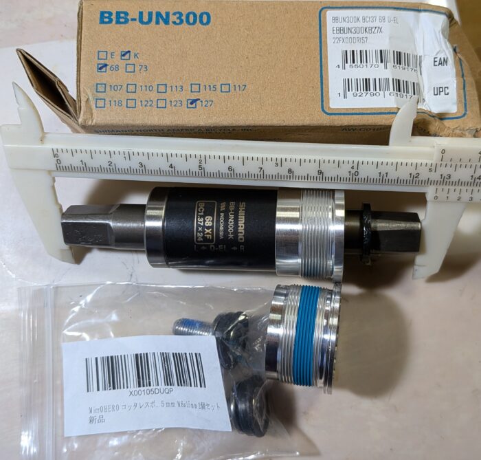 このサイズのBBを交換する場合のサイズを聞くと シェル幅68mm、軸長127mmで