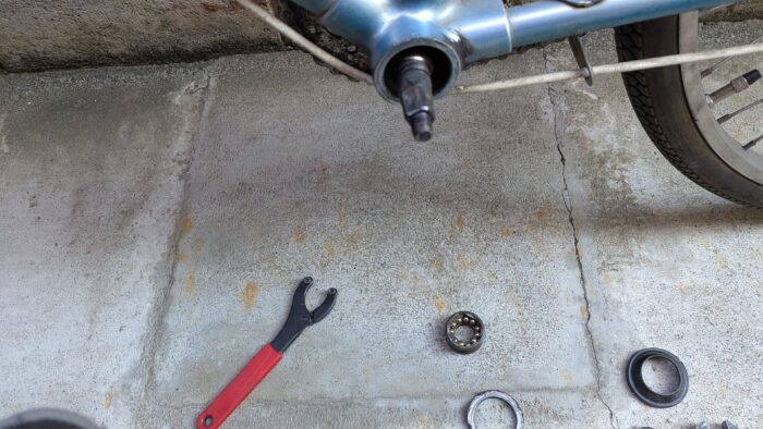 右ワンはBBの軸を抜いたときに、ベアリングがボロボロ落ちたので