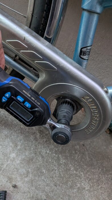 チェーンリング&クランクを先につけると、トルクレンチを使えない。