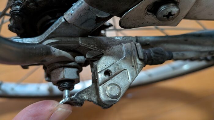最後に後輪側で調整ボルトでケーブル長調整。