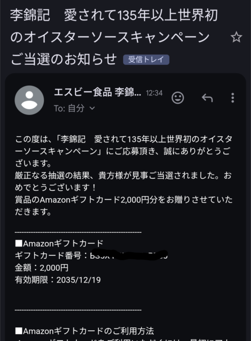 レシートの写真を撮って、キャンペーンに応募しておいたのだ。
