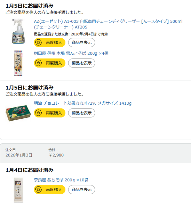 amazonの1月のセールではポイントアップするようにその他に食品を買った。