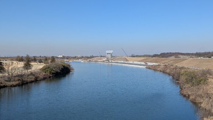 荒川を渡り終えると左岸の土手に接続する土手が出来ていた。