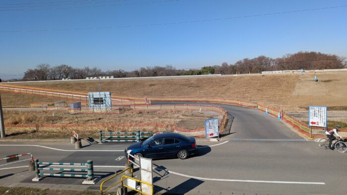 自動車教習所やグランドの方へいくには土手の坂を上がらなければならなくなった。