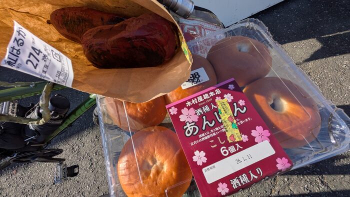 焼きいも1本食べて、あんぱん2個で13時過ぎに昼飯とした。
