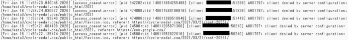 昨年、アクセス拒否にした奴、流石に年が変わって、アクセスして来ていないだろうと思ったら、来てた。