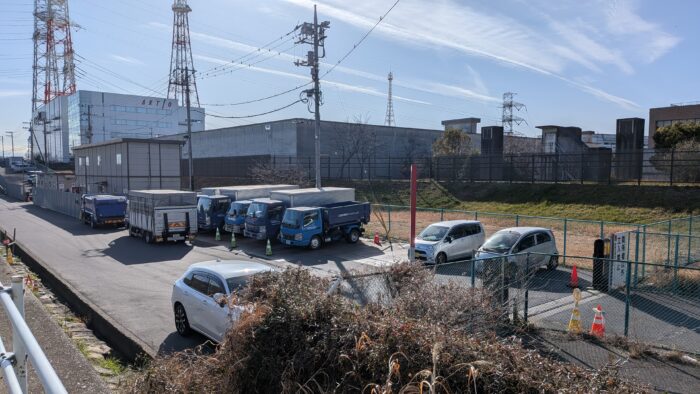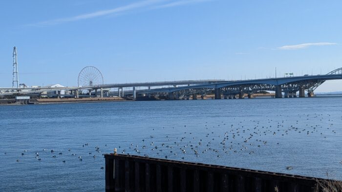 荒川河口の東部スラッジプラントの高い塔の手前の丸いボールが