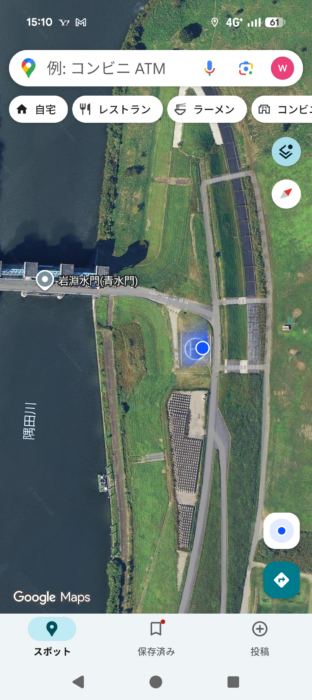 帰宅後に河口のgoogleマップの航空写真(上の写真)を改めてみた。