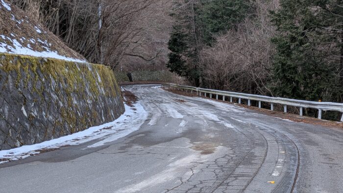 苅場坂峠、正丸峠 経由で帰りたいが、路面状況が心配な様だ。