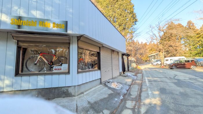 まず、標高600mのカフェのそばの建物には、ロードバイク2台が委託販売で展示されていた。