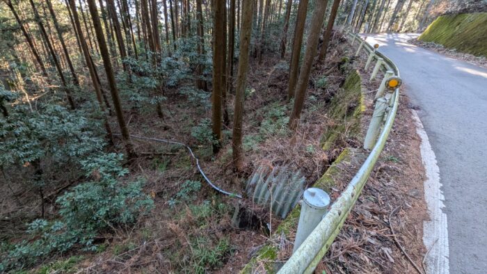 白石峠でカーブ曲がっただけで、日陰はこんな感じだった。