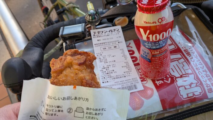 ときがわ町の田中交差点近くのコンビニで昼飯たべることにした。