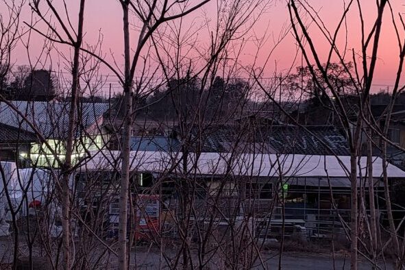 川島町のメダカ屋を1月に通った時は、瓦屋根のNO WARの文字は無くなっていたが、