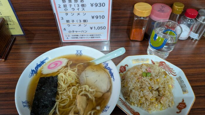 朝飯から6時間経っているので、ガッツリ、おすすめセットのラーメン&半チャーハン