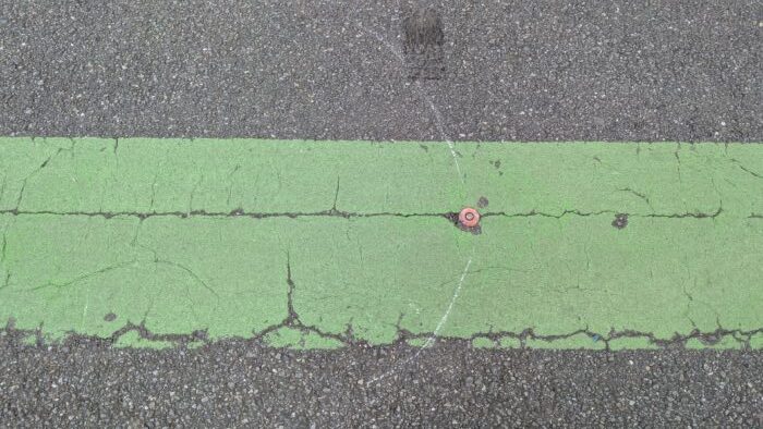 バミリ位置がカラーコーン中央かと思ったが、端だった。