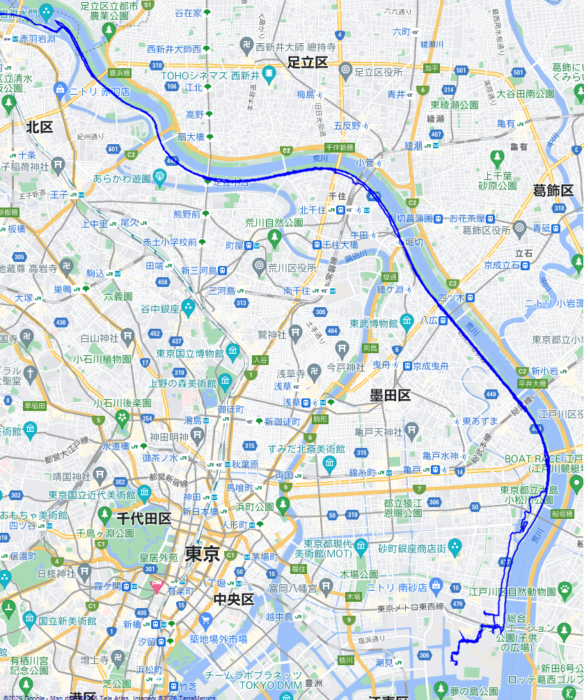 岩淵水門の辺りでコースが土手の上か下かでそんなに変わるか?