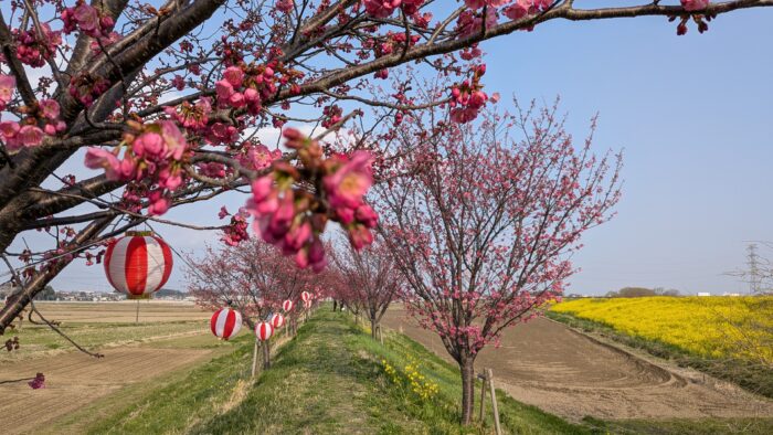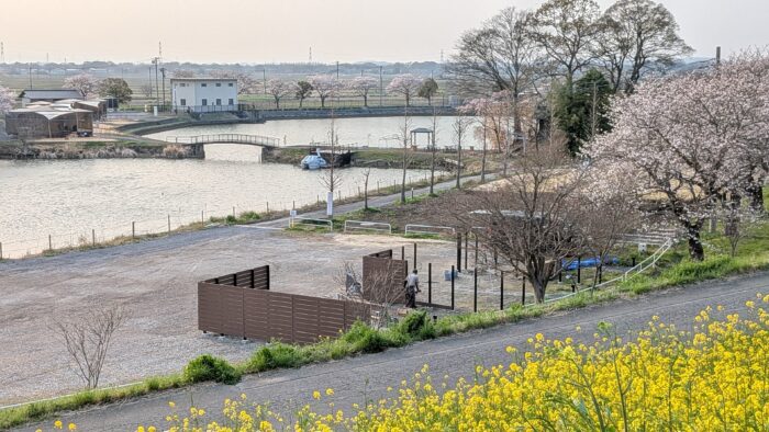 右の菜の花の土手が東松山の工事が終わった土手だが、