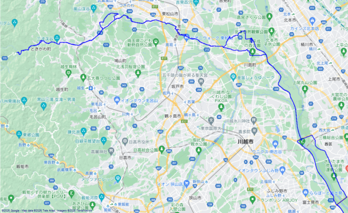 東松山の工事中で通行止めだった都幾川の土手は通れるようになっていた。