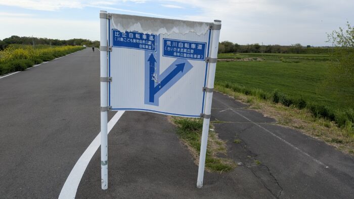 比企自転車道と荒川自転車道の分岐点まで来た。