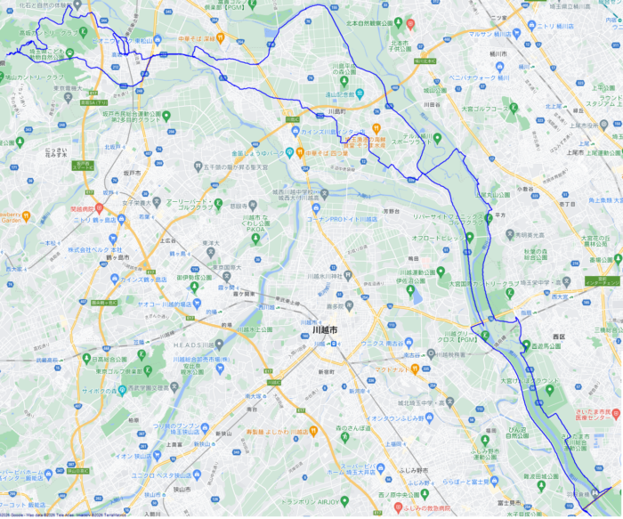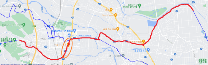 今日は、動物園側の比企自転車道終点から松永橋近くの起点まで走ったので、