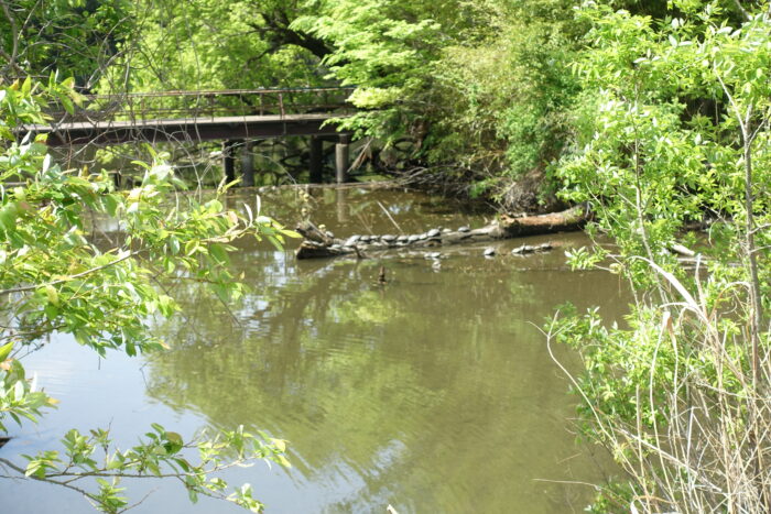 西遊馬の池では、今日もカメが甲羅干ししていた。