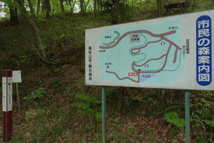 案内図を見ると表側の物見山を通る道路に出られそうなので進んでみた。